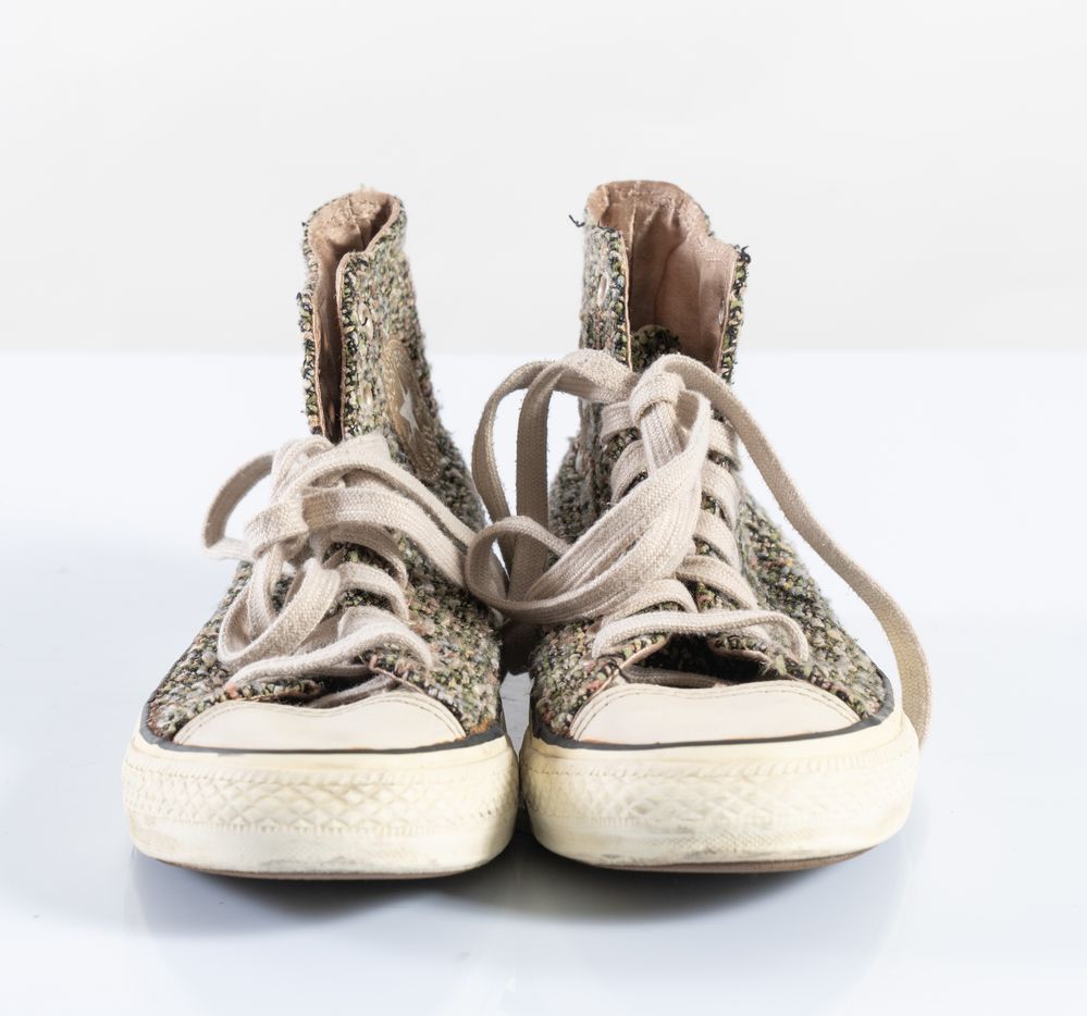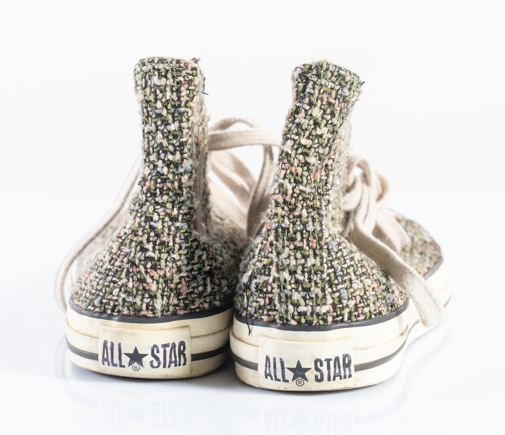 CONVERSE Sneakers in tessuto tweed sui toni del verde. Taglia riportata: US 6,5. Recano marchio All Star Converse.