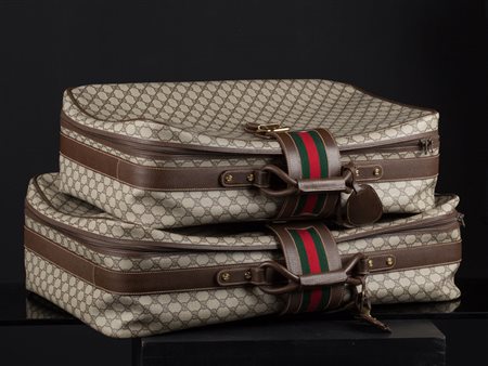 Gucci 1970'sA set of two suitcases in the classic waxed canvas, decorated...