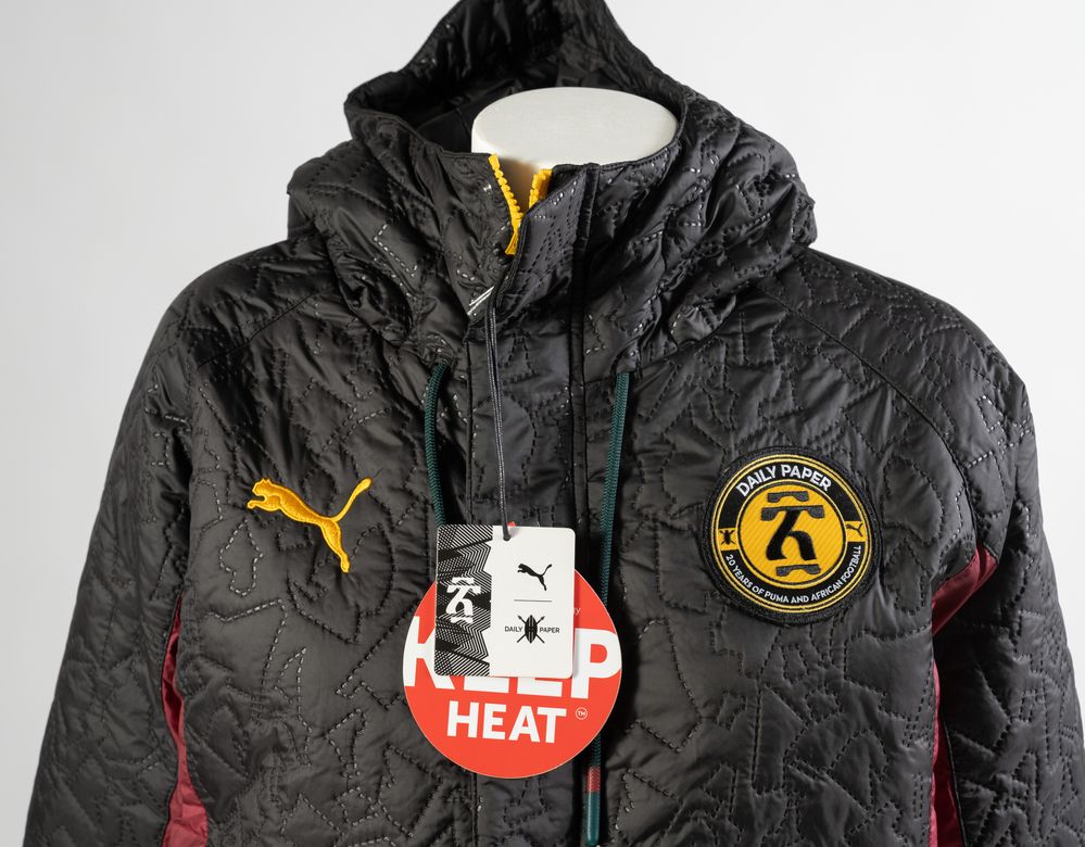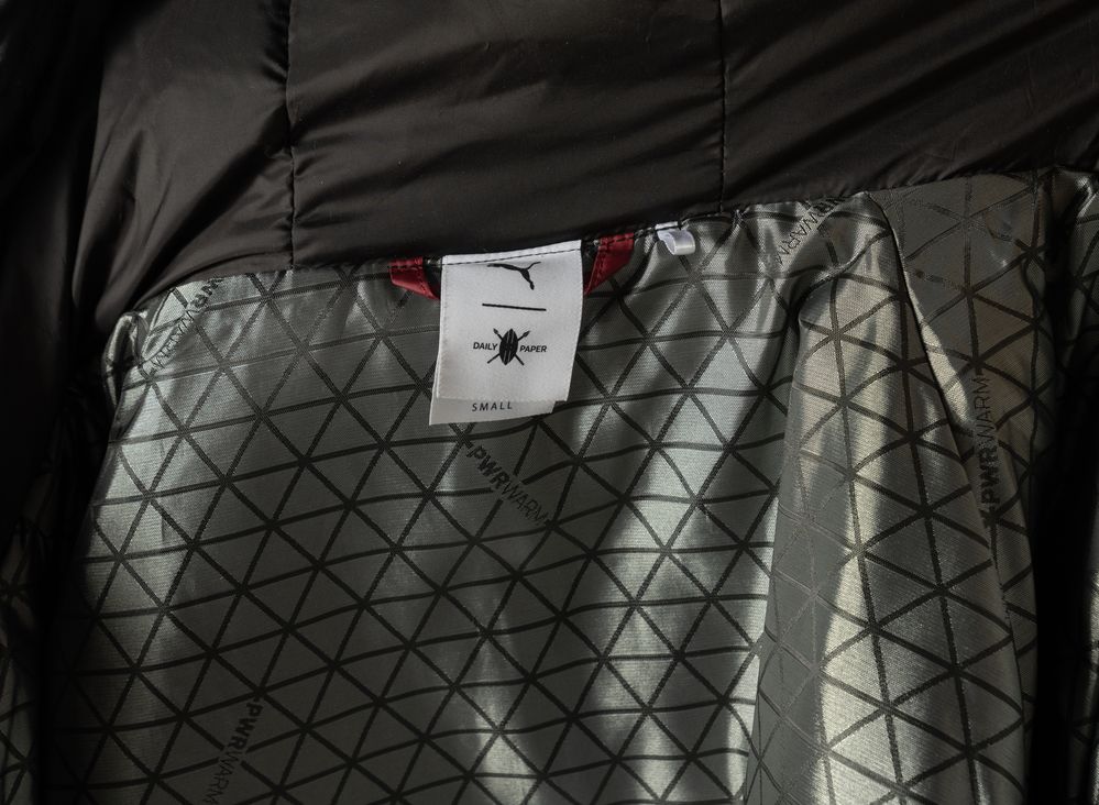 PUMA x DAILY PAPER Piumino da uomo con capouccio. 2017. Taglia riportata: S. Composizione esterno 100% polyester; interno 100% polyester; imbottitura 70% piumino,30% piuma. Reca Marchio Puma e Daily Paper. (nuovo)