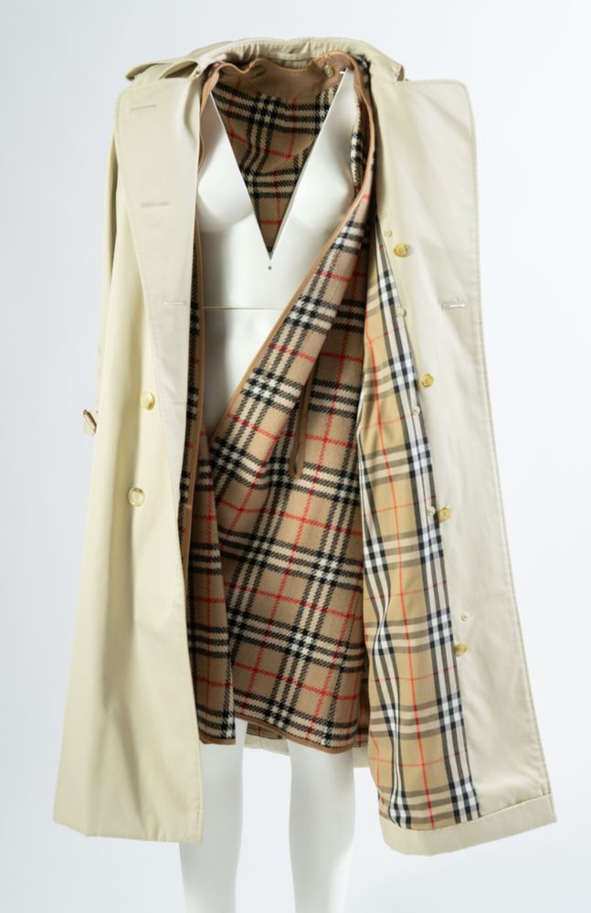 BURBERRY Cappotto modello trench in cotone beige con interno in tela logata e doppia fodera in lana removibile. Taglia non riportata: veste una IT 42-44. Composizione esterno 100% cotone; composizione interno 100%; composizione fodera 100% lana. Reca etichette Burberrys, Made in England.
