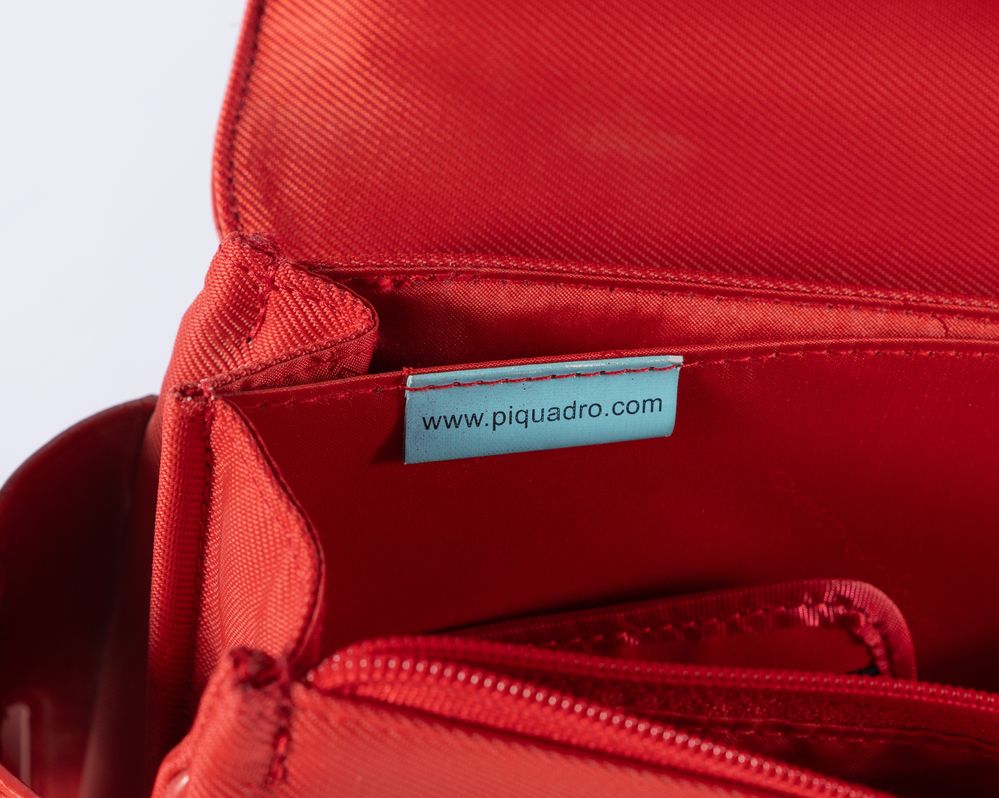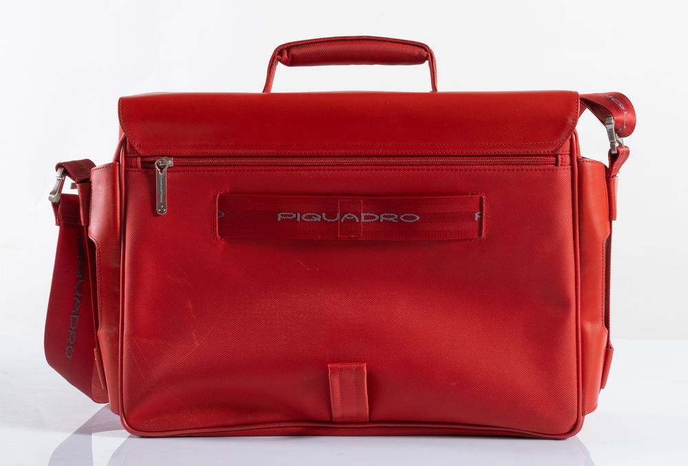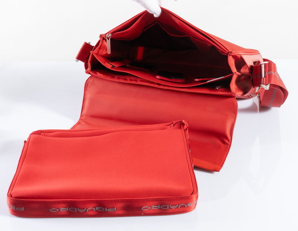 PIQUADRO Borsa a cartella in tela rossa e finiture in pelle. Tracolla...