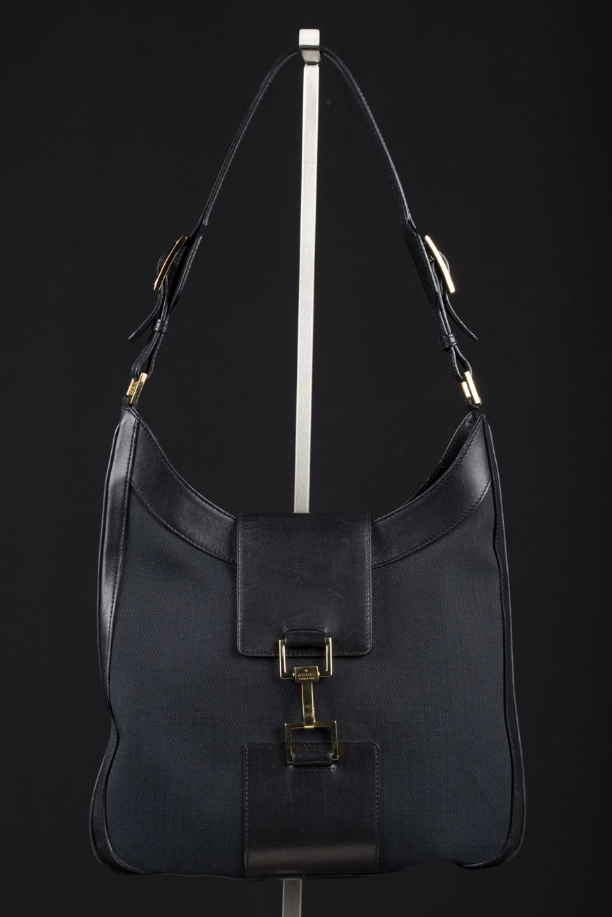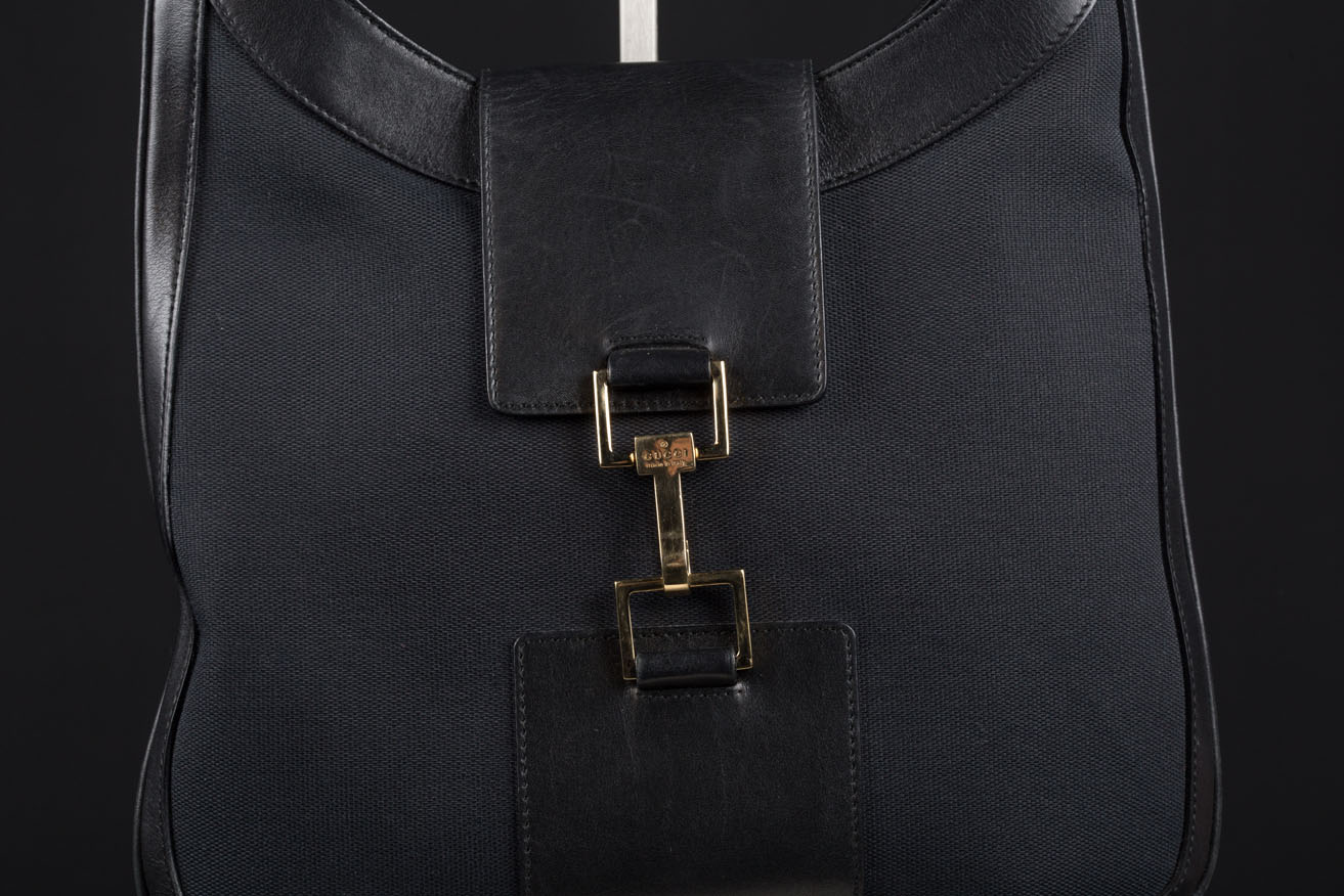 Gucci 1980'sA fabric and black leather handbag lxh 26 x 30 cm