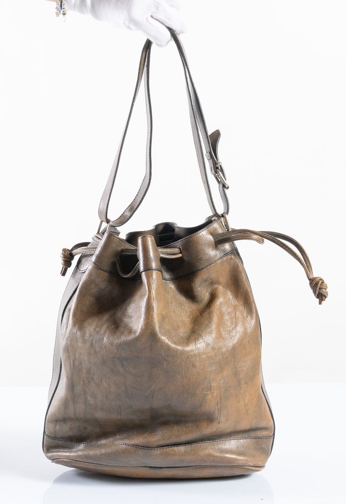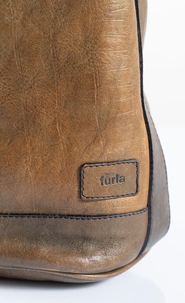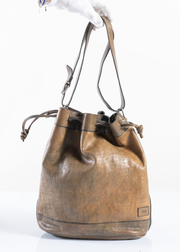FURLA Borsa a spalla modello secchiello in pelle marrone. Cm 30x27x14; altezza con tracolla cm 65. Reca marchio Furla, Made in Italy. (lievi difetti)