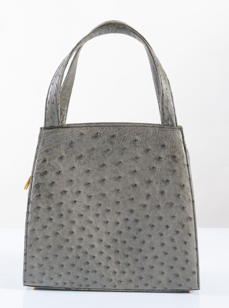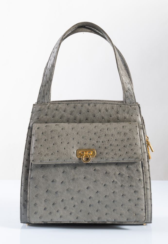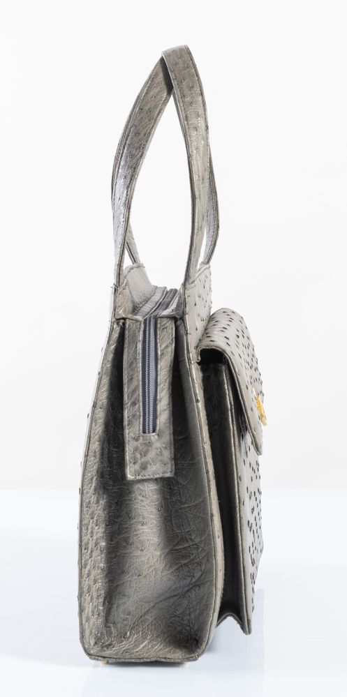 BORSA a mano in pelle di struzzo grigia. Reca tasca sulla parte anteriore e...