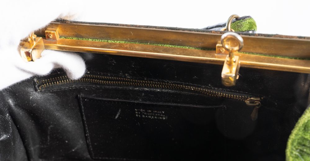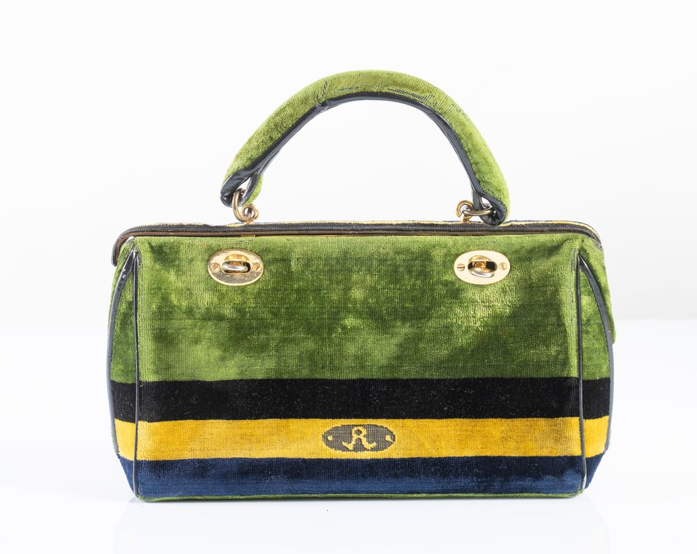 ROBERTA DI CAMERINO Borsa a mano in velluto verde e finiture in metallo...