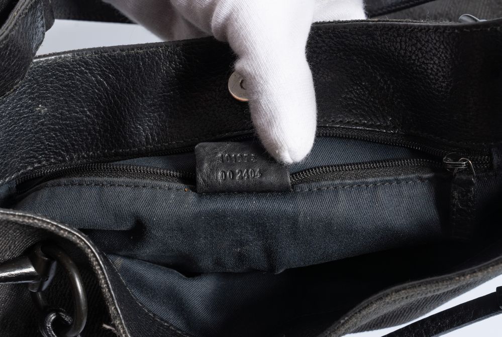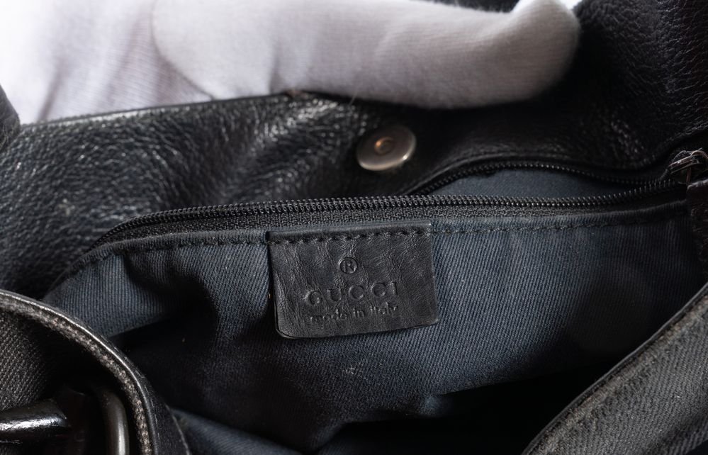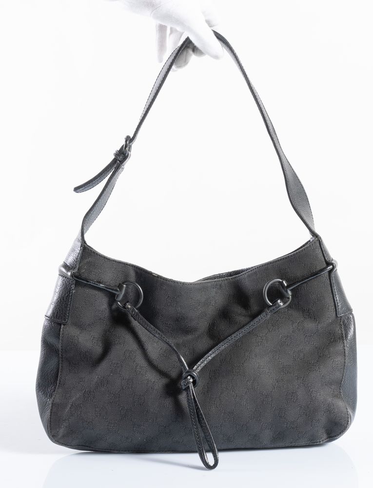 GUCCI Borsa a spalla in tela nera GG. Inserti in pelle nera e metallo nero. Cm 48x38x6. Reca marchio Gucci Made in Italy e codice di riferimento prodotto 101975 002404.(lievissimi difetti)