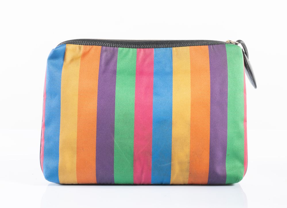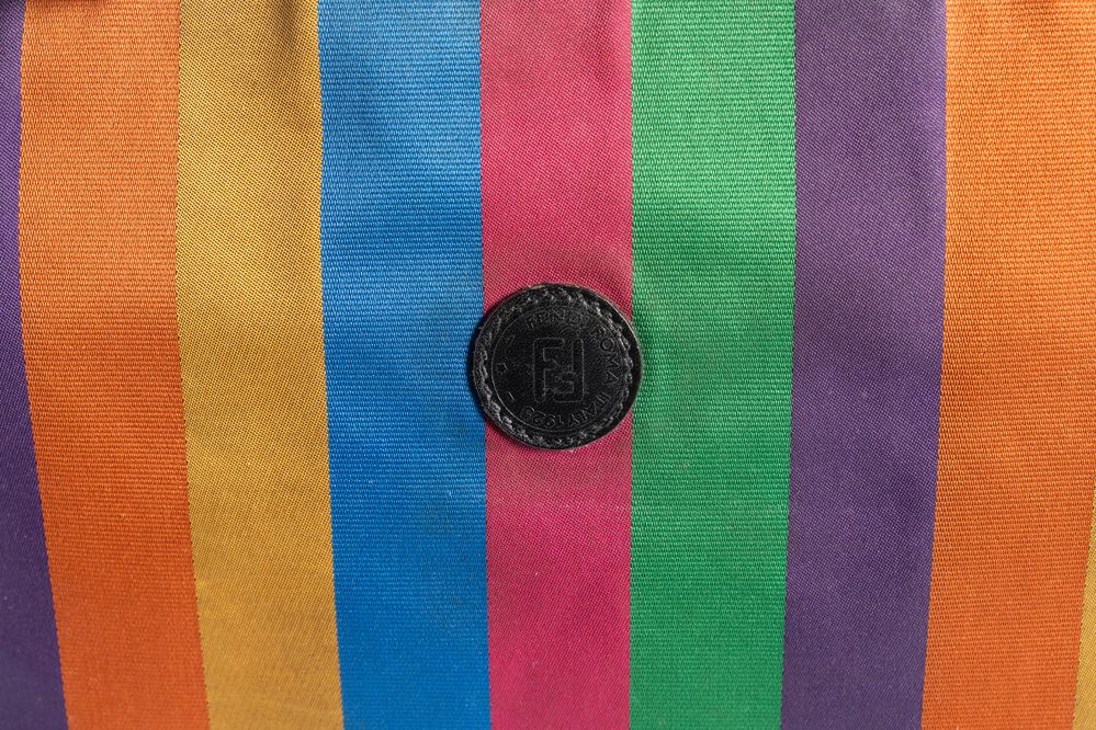 Lot 166 | FENDI Pochette in tela con fantasia a righe colorate. Cm 25x34x4. Reca marchi...