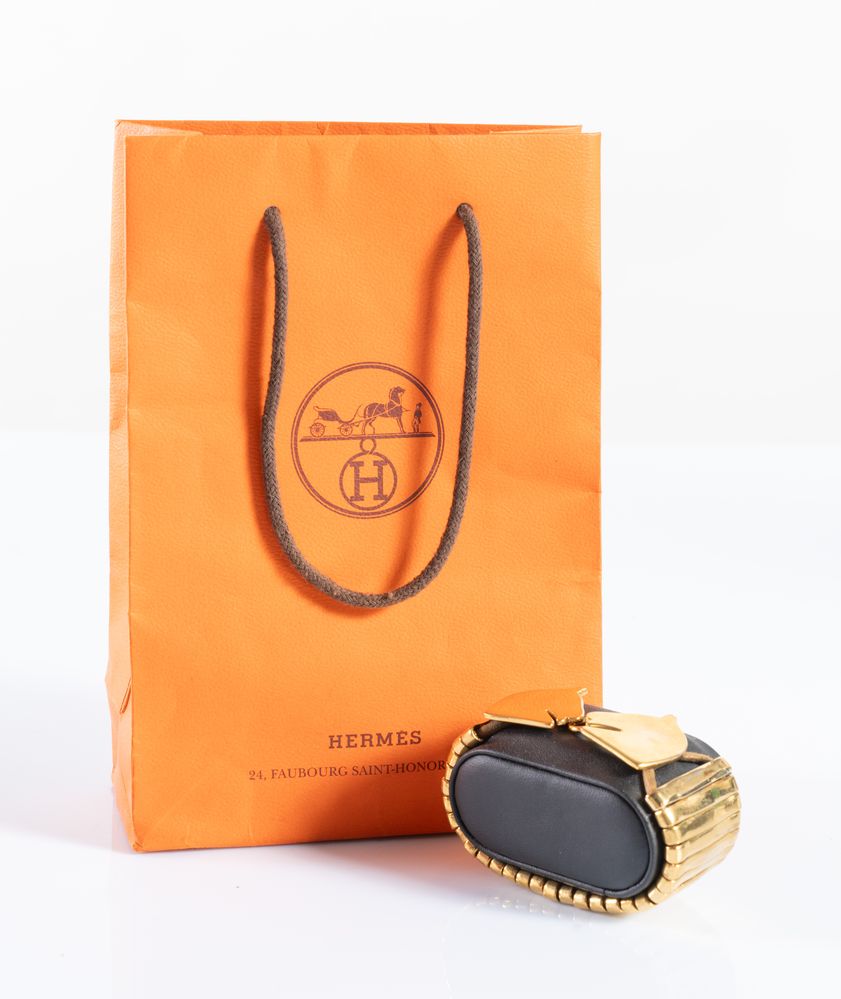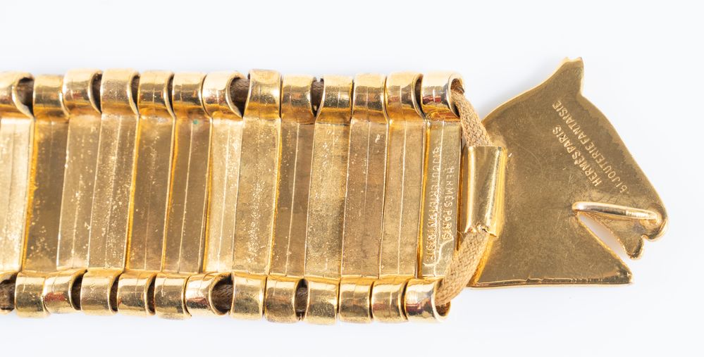 HERMES Raro bracciale semirigido in metallo dorato e chiusura a doppia testa...