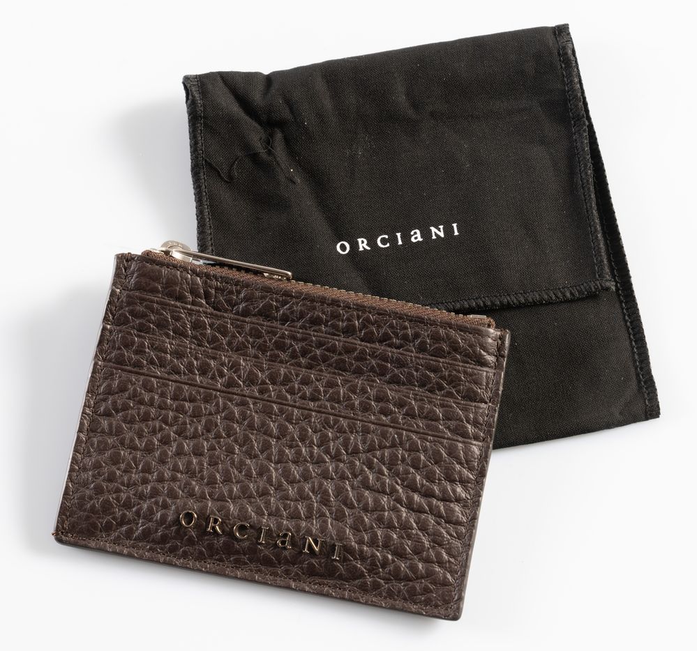 ORCIANI Portamonete in pelle color marlboro. Cm 8,5x11. Reca marchio Orciani, Made in Italy. Corredato di scatola originale e dustbag. (nuovo)