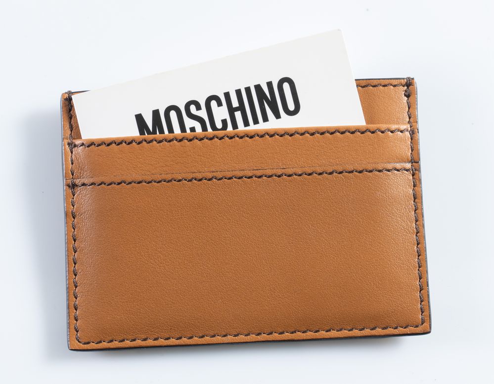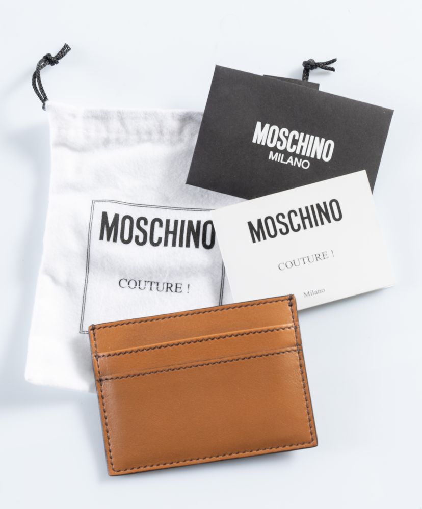 Lot 180 | MOSCHINO COUTURE Portacarte in pelle color caramello. Cm 8x10,5. Reca marchio...