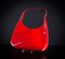 A bright red leather bag. Interior lined with black fabric and with zip compartment.