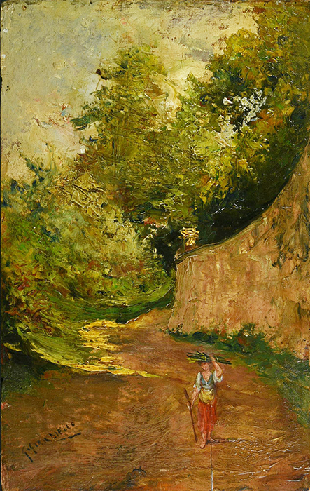 Carmine Ciardiello LA FASCINAIA olio su tavola, cm 23x15 firma Provenienza...
