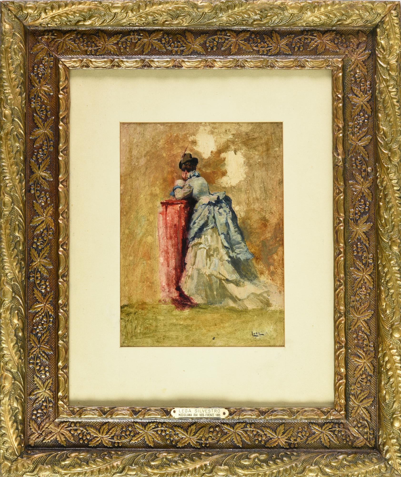 Silvestro Lega DONNA IN PREGHIERA olio su cartoncino, cm 36,7x29,4 firma...