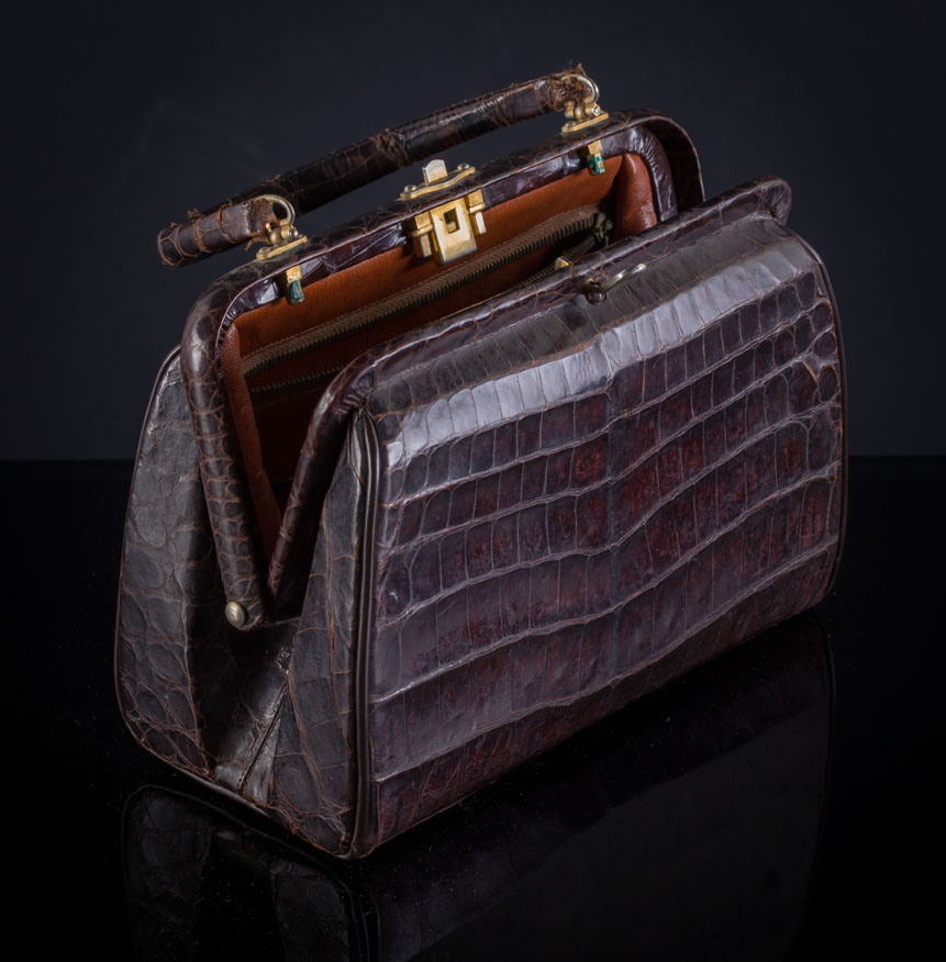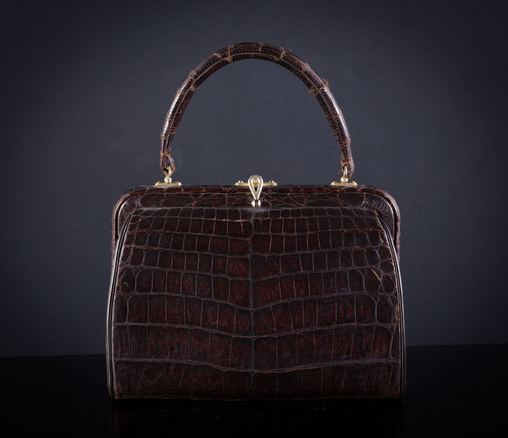 A craftsman-made handbag 1950'sA brown crocodile handbag. lxhxp 24 x 18 x...