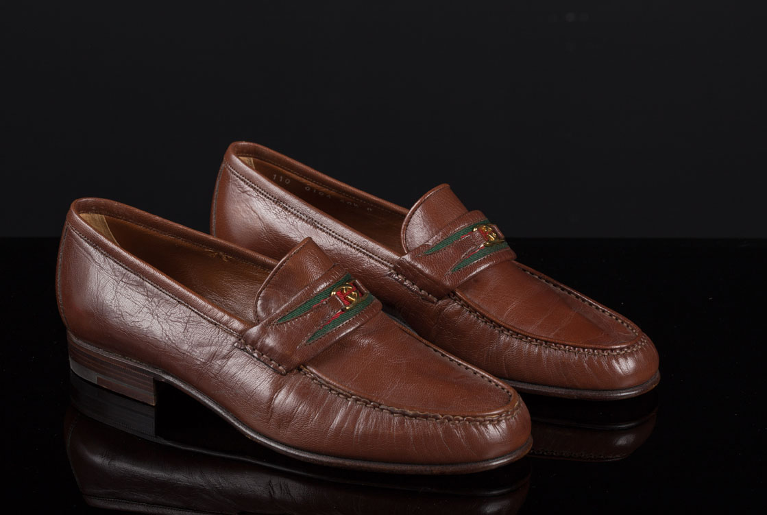 Gucci Second half of 20th CenturyA pair of classic men's brown leather...