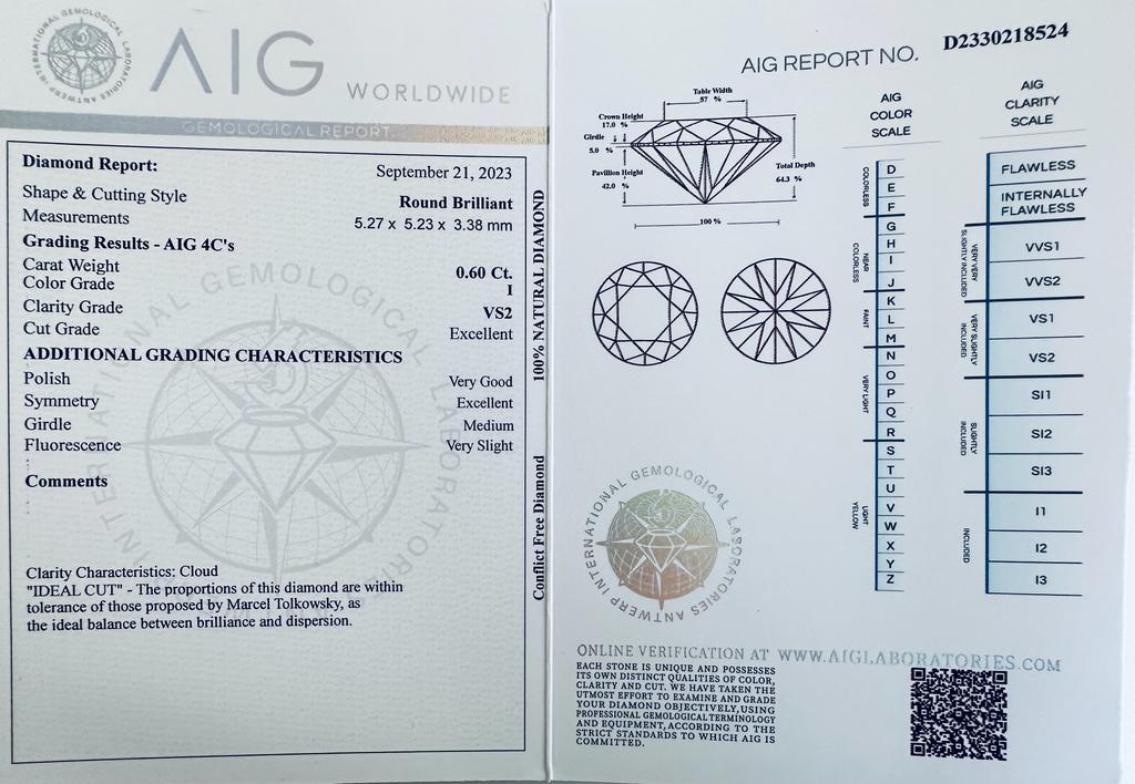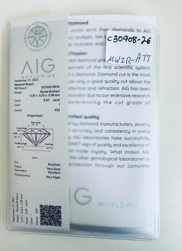 DIAMANTE 0,6 CARATI - COLORE I - PUREZZA VS2 - TAGLIO BRILLANTE - C30908-26