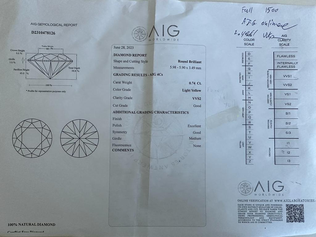 Lot 162 | DIAMANTE 0,74 CT GIALLO CHIARO - VVS2 - C30604-1