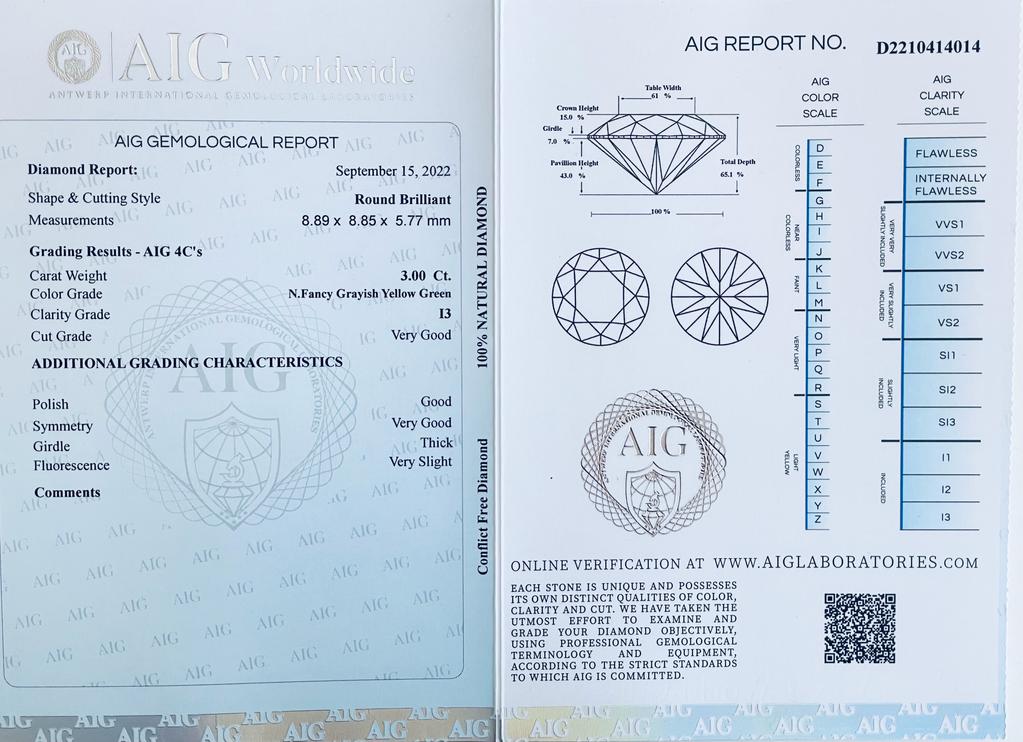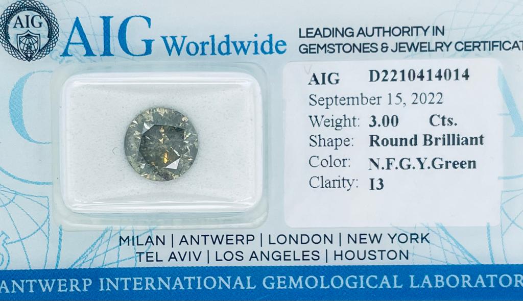 Lot 163 | DIAMANTE 3 CT FANCY GRIGIASTRO GIALLO VERDE - I3 - C20909