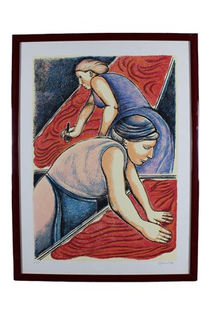 GUERRICCHIO litografia 7/50 la preparazione dell'astratto h cm 75x 55