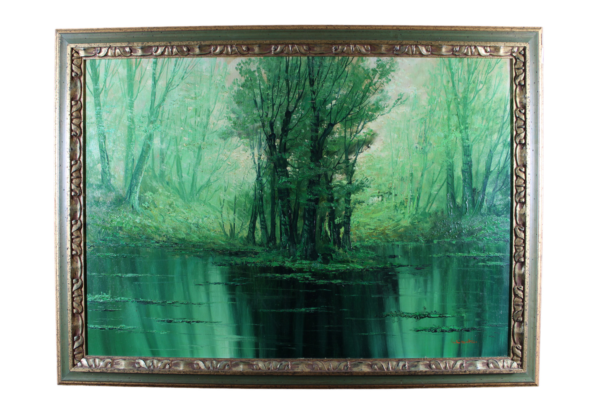 Previous Lot 29 Next Trionfante Antiques - VIA ALTOFONTE 82, 90129 PALERMO ASTA DI ANTIQUARIATO VINTAGE E COLLEZIONISMO ASTA ANTIQUARIATO VINTAGE E COLLEZIONISMO Wednesday 20 December 2023 hours 20:30 (UTC +01:00) DI MARTINA DI MARTINA olio su tela bosco h cm 70 x 100