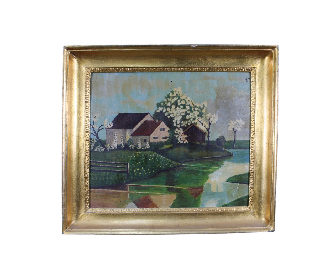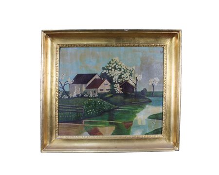 MONOGRAMMA G.-NA olio su compensato Paesaggio con fiume h cm 45 x 55