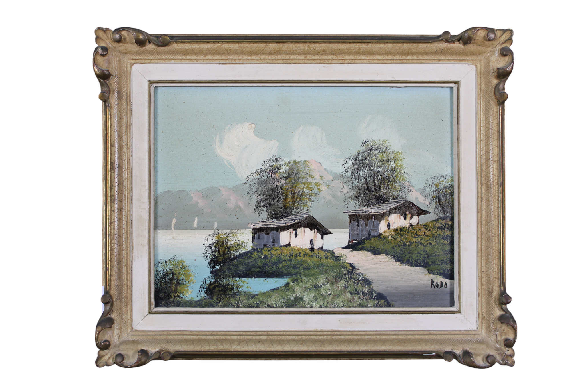LOTTO COMPOSTO DA 2 OLII SU FAESITE raffìgurante Paesaggi montani di cui uno a firma Rodo h cm 30 x 40