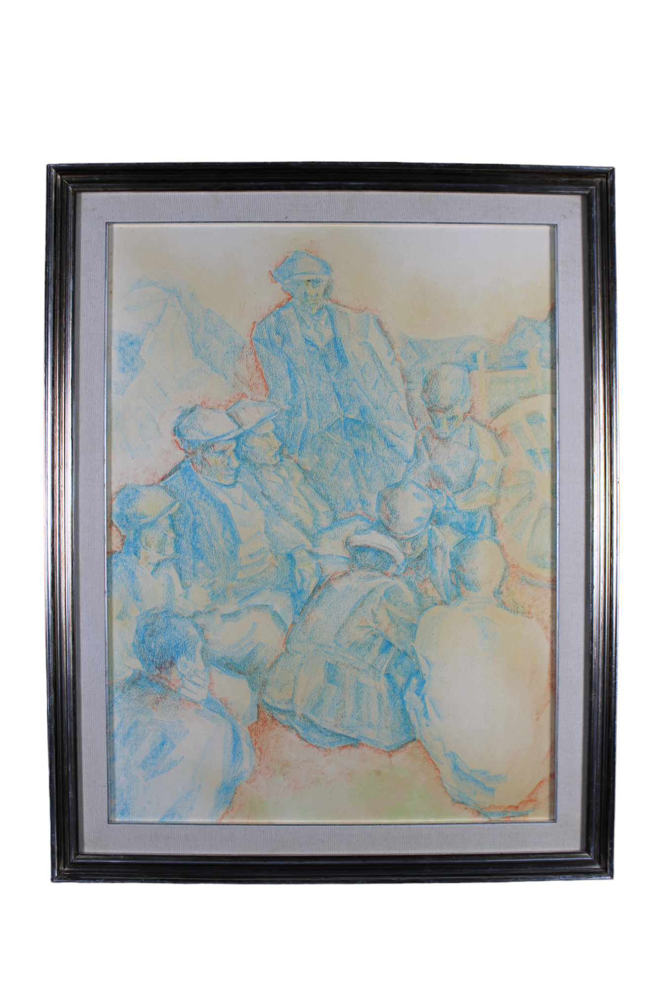 ATTRIBUZIONE MADE' pastello su cartoncino Personaggio di paese h cm 85 x 65