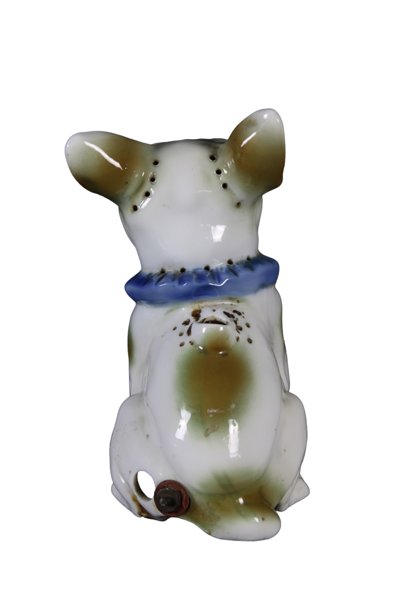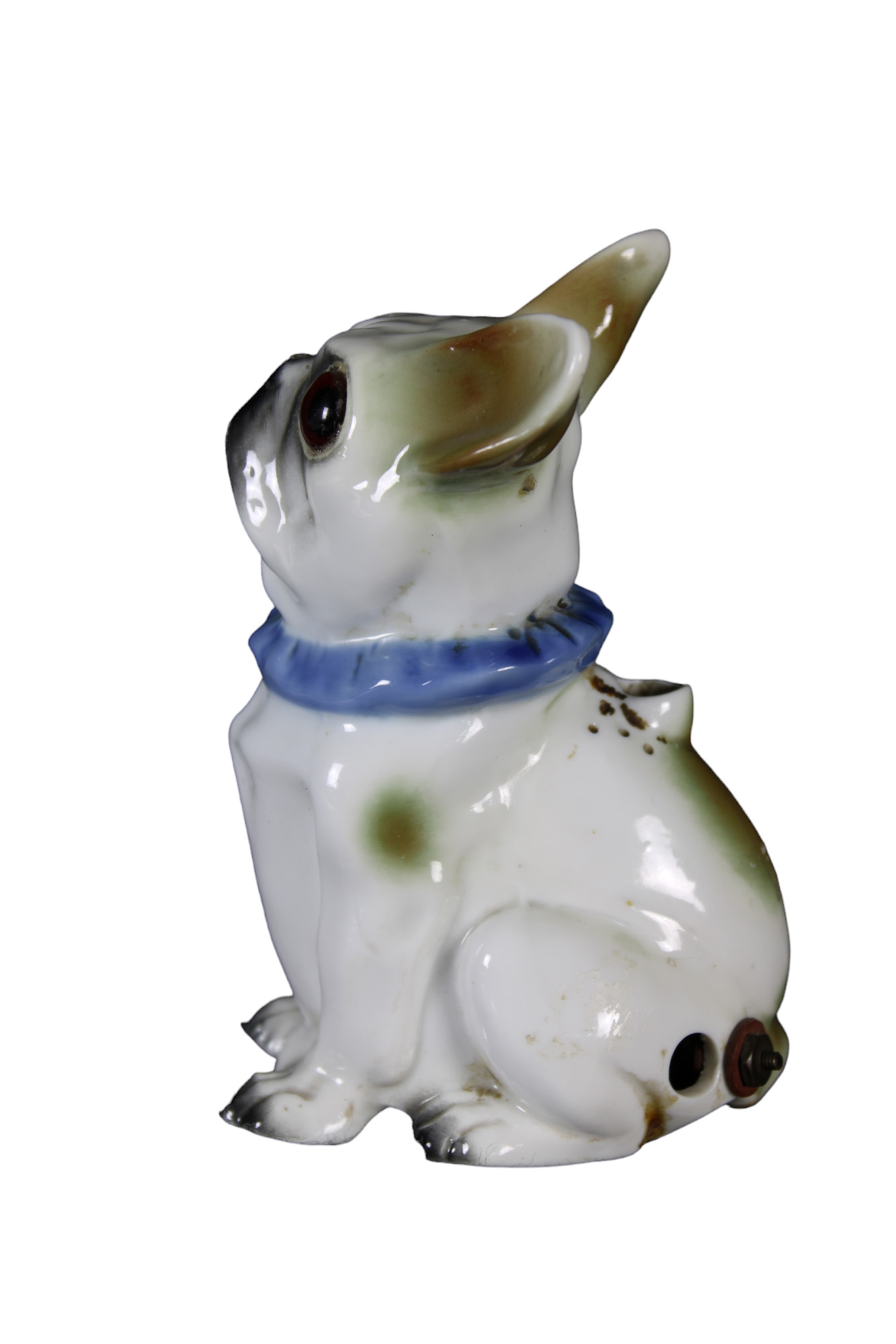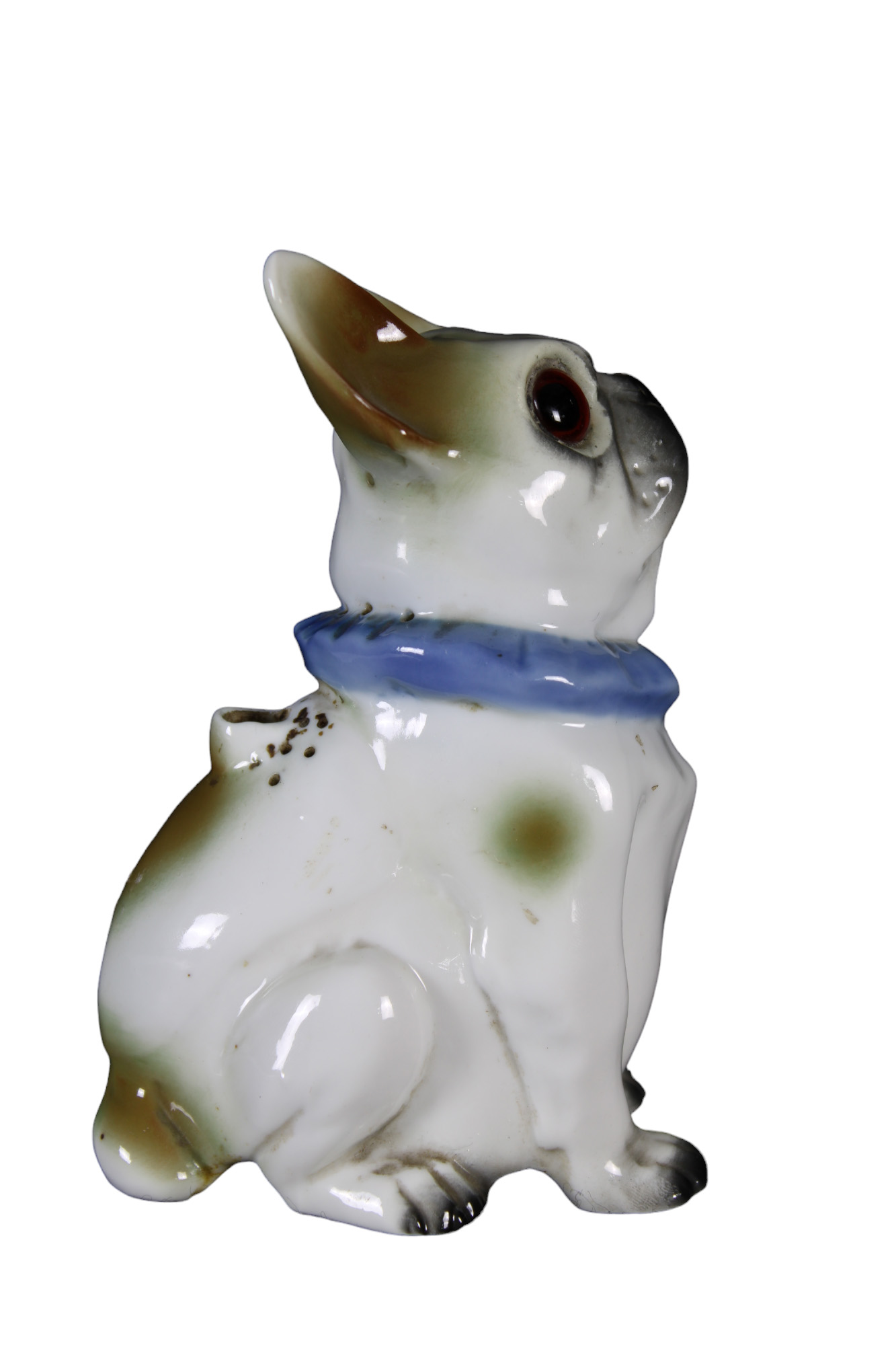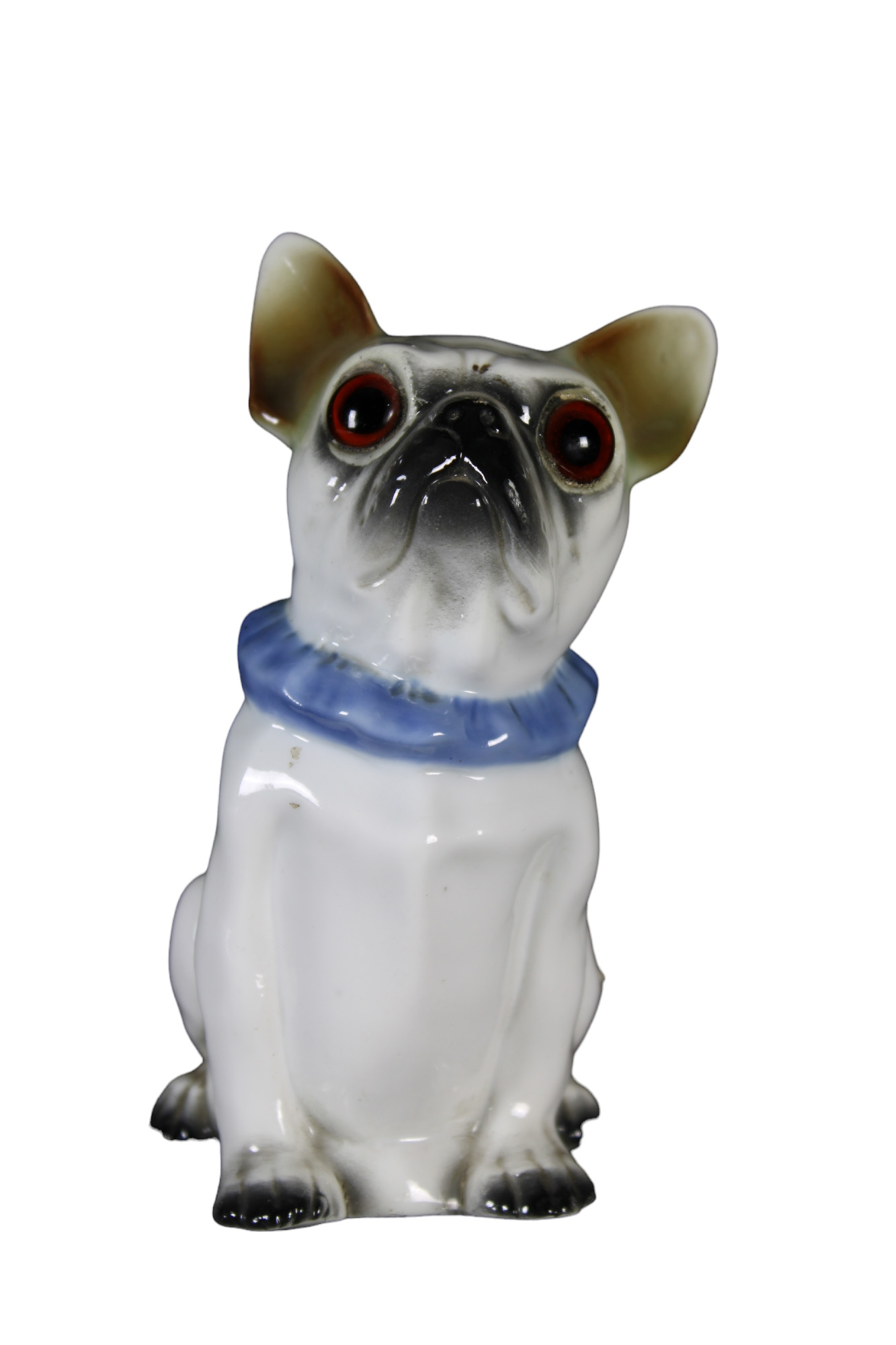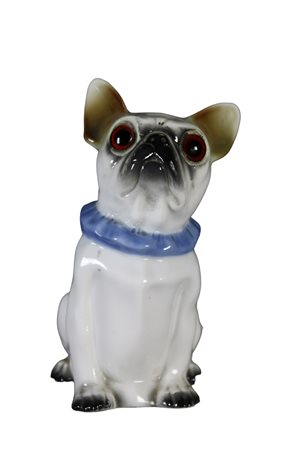 SCULTURA in porcellana raffigurante carlino montanto a lampada che illumina gli occhi manifattura inglese XX secolo h cm 13 x 7 x 9
