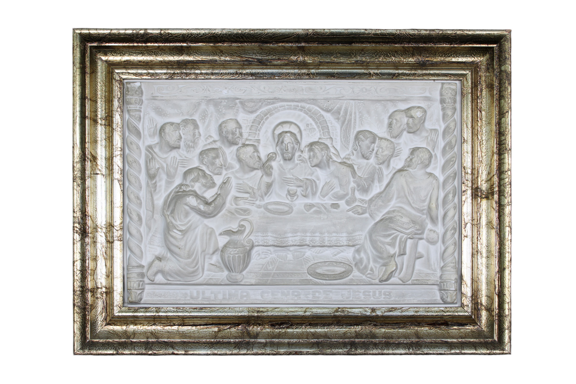 BASSORILIEVO in gesso raffigurante ultima cena, tracce di firma alla base XX secolo h cm 28 x 41