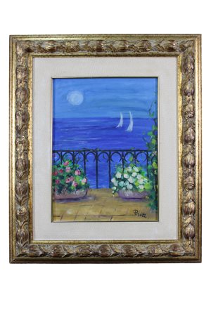 PRATI tecnica mista su tela Balcone sul mare h cm 38 x 28