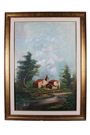 ANTONIO RUSSO olio su tela Paesaggio con casolare h cm 100 x 70