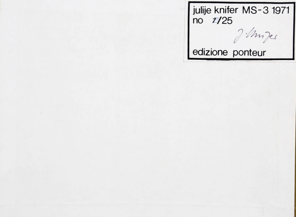 JULIE KNIFER 1924 - 2004 " MS - 3 ", 1971 Multiplo, cm. 22 x 28 Firmato e datato sul retro Opera n. 1/25 Edizione Ponteur Prov. Collezione Privata