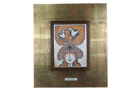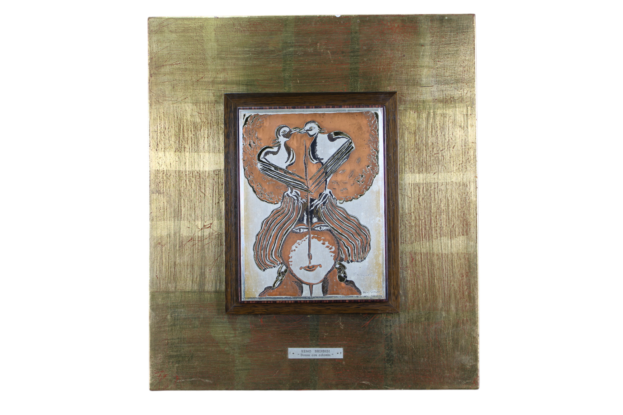 REMO BRINDISI incisione su argento Donne con colombe h cm 18 x 24