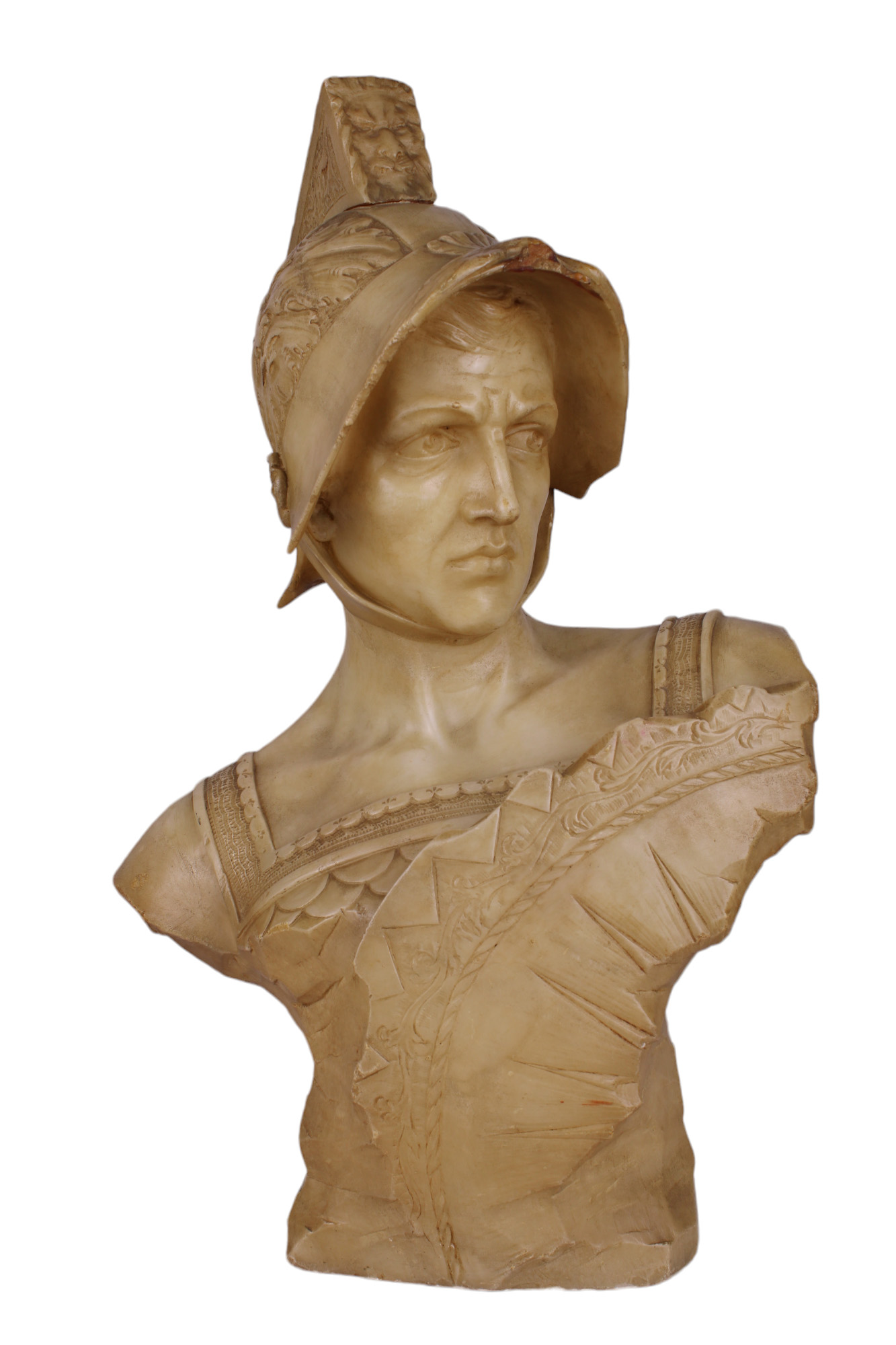 SCULTURA in alabastro raffigurante soldato firmato G. GAMBOGI h cm 45,5 x 32 x 15