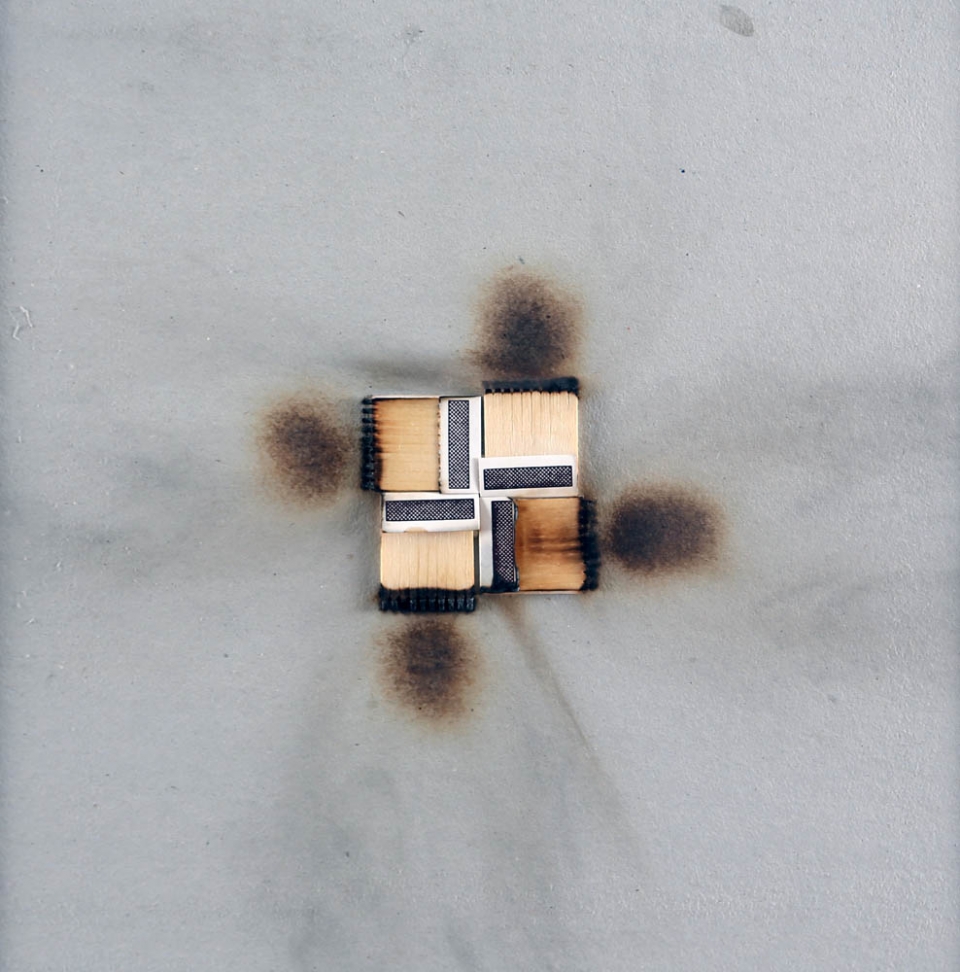 BERNARD AUBERTIN 1934 " Dessin de feu ", 1974 Fiammiferi bruciati applicati...