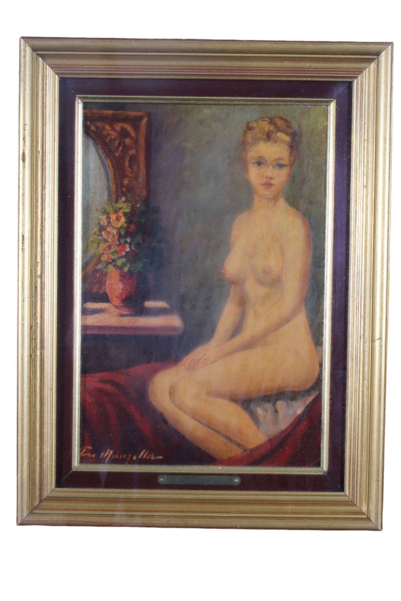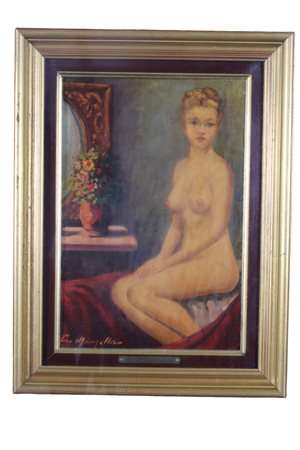 SALVATORE MANZELLA olio su tela Nudo di donna h cm 30 x 20 / cornice h cm 52 x 42,5
