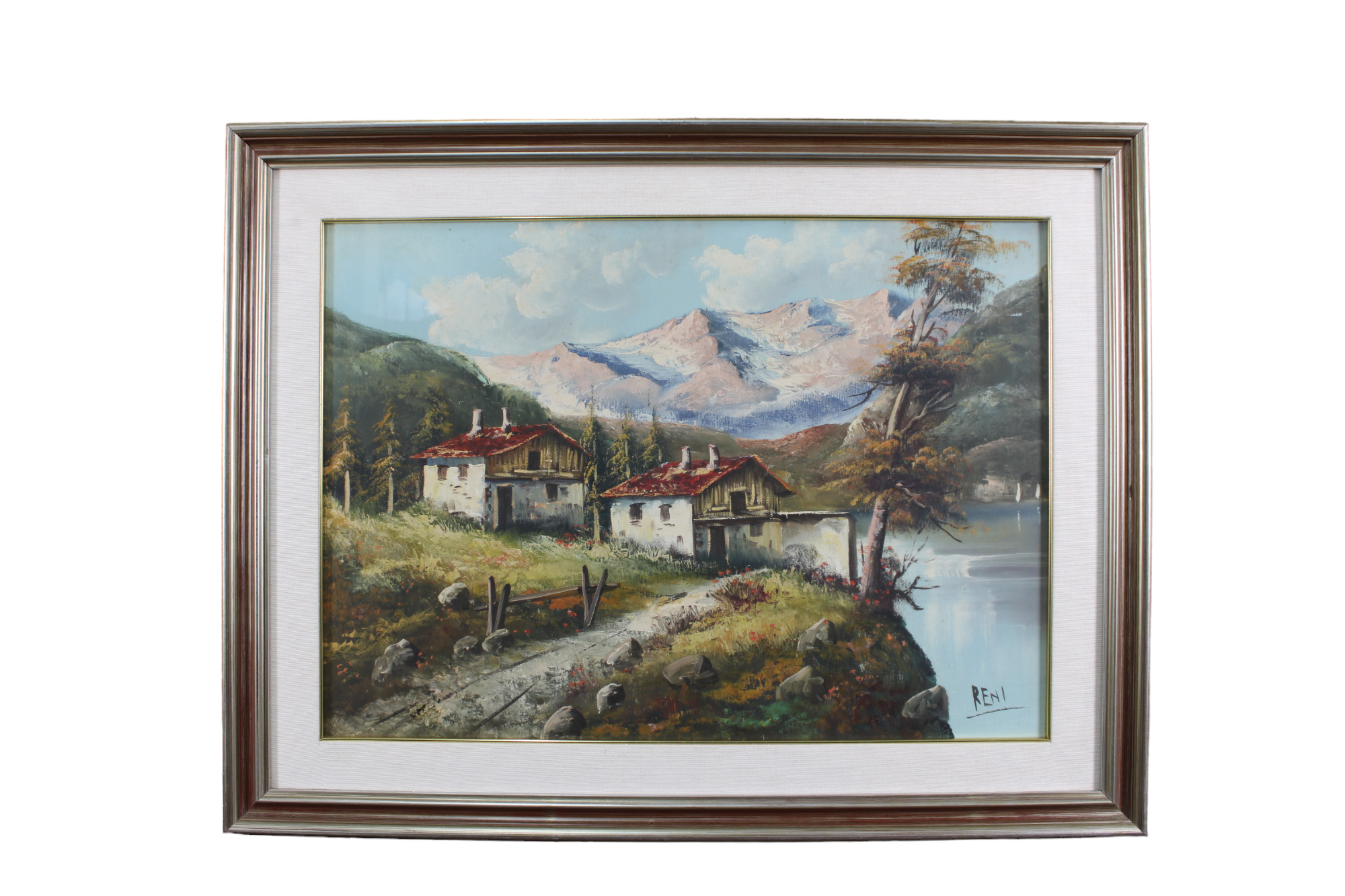 Previous Lot 108 Next Trionfante Antiques - VIA ALTOFONTE 82, 90129 PALERMO ASTA DI ANTIQUARIATO VINTAGE E COLLEZIONISMO ASTA ANTIQUARIATO VINTAGE E COLLEZIONISMO Wednesday 20 December 2023 hours 20:30 (UTC +01:00) RENI RENI olio su tela Casa di montagna h cm 50 x 70