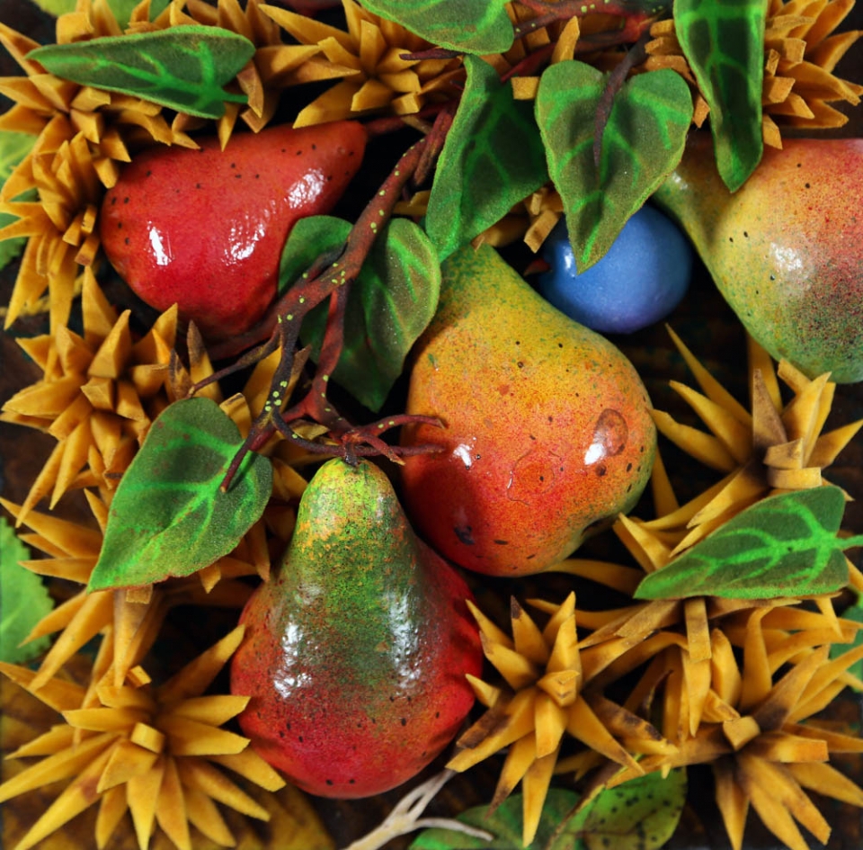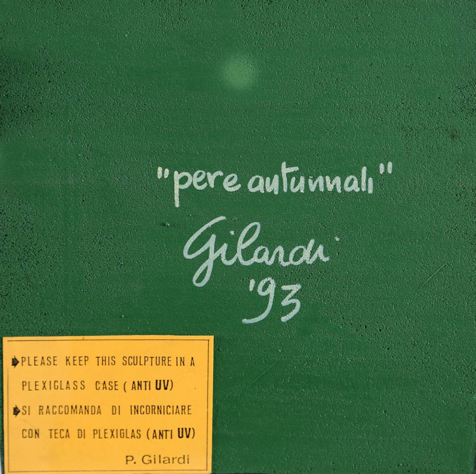 PIERO GILARDI 1942 " Pere autunnali ", 1993 Scultura in poliuretano espanso, cm. 30 x 30 Firmato e datato sul retro Autentica dell'artista su fotografia Prov. Collezione Privata