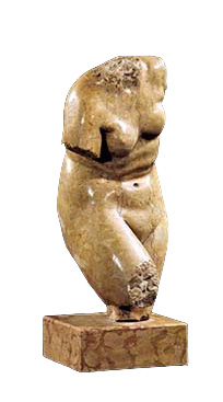 SCULTURA in marmo giallo di Verona raffigurante Torso femminile sorretto da base in marmo rosso di Verona Roma XIX / XX secolo h cm 72 senza base