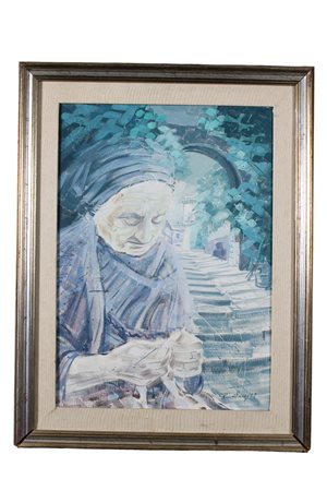 OLIO SU TELA raffigurante Anziana firma in basso a d/x h cm 50 x 35