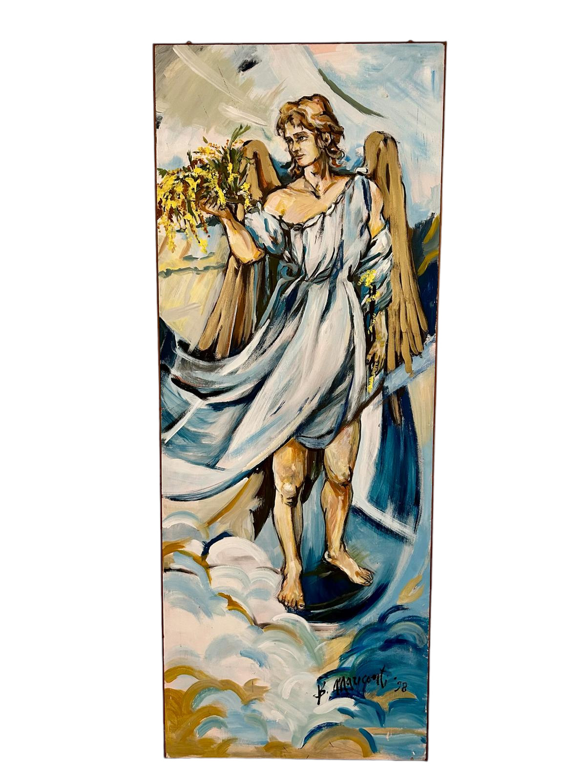BARBARA MARICONTI Milano Brera Olio su compensato raffigurante angelo h cm 244 x 94