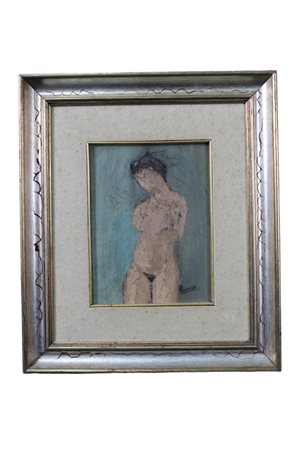 PUCCIO olio su tela raffigurante Nudo di donna h cm 24 x 18 / cornice h cm 44 x 38