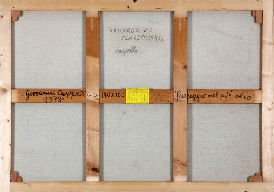 GIOVANNI CAPPELLI 1923 - 1994 " Ricordo di Scardovari ", 1978 Olio su tela, cm. 100 x 140 Firmato e datato in basso a destra Autentica di Paola Silvestrini su fotografia Etichetta Studio F22 Palazzolo, sul retro Prov. Collezione Privata