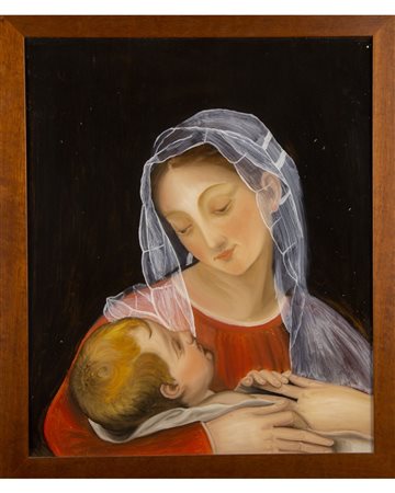 OLIO SU VETRO raffigurante Maternità h cm 50 x 42