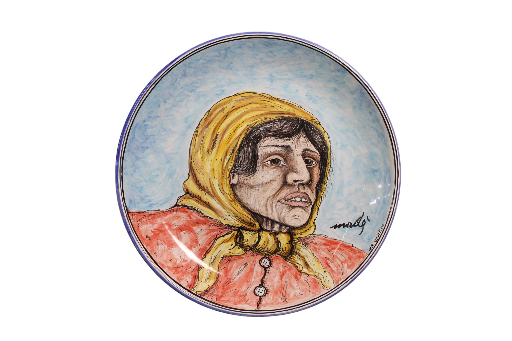 PIPPO MADE' piatto in maiolica dipinta Volto femminile cm Ø 44