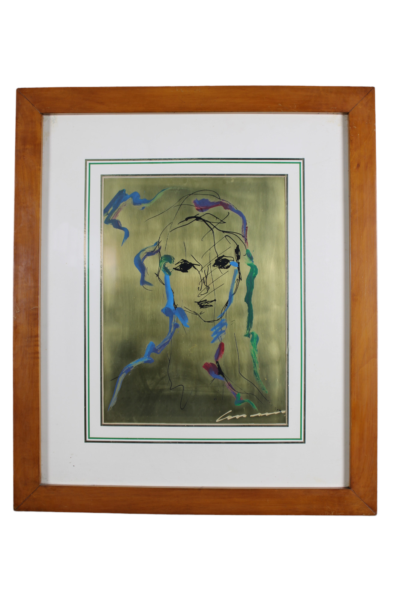 ERNESTO TRECANI tecnica mista su lastra Volto di donna h cm 40 x 30