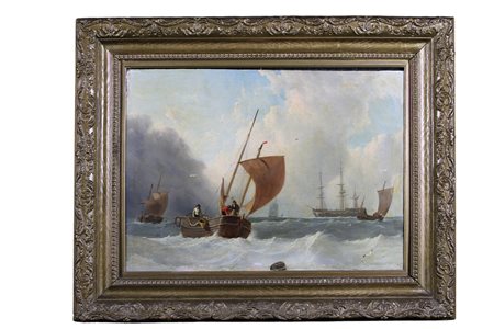 OLIO SU TAVOLA Paesaggio marino attribuzione autore inglese h cm 40 x 54,5