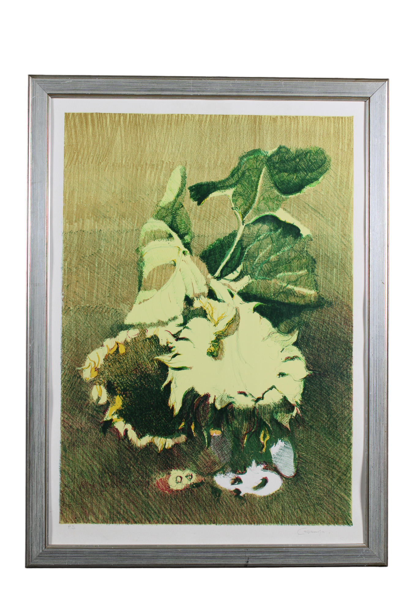 Previous Lot 203 Next Trionfante Antiques - VIA ALTOFONTE 82, 90129 PALERMO ASTA DI ANTIQUARIATO VINTAGE E COLLEZIONISMO ASTA ANTIQUARIATO VINTAGE E COLLEZIONISMO Wednesday 20 December 2023 hours 20:30 (UTC +01:00) CAZZANIGA CAZZANIGA prova di stampa Girasoli h cm 69 x 49