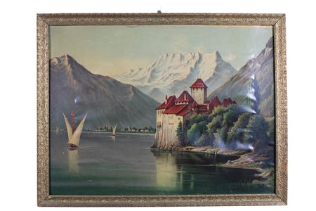 STAMPA LITOGRAFICA Paesaggio inizi 900 h cm 53 x 69