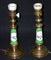 Coppia di candelieri in ottone e ceramica dipinta montati a lampada. Inizi XX secolo. Mis. Alt. cm. 21 ca.